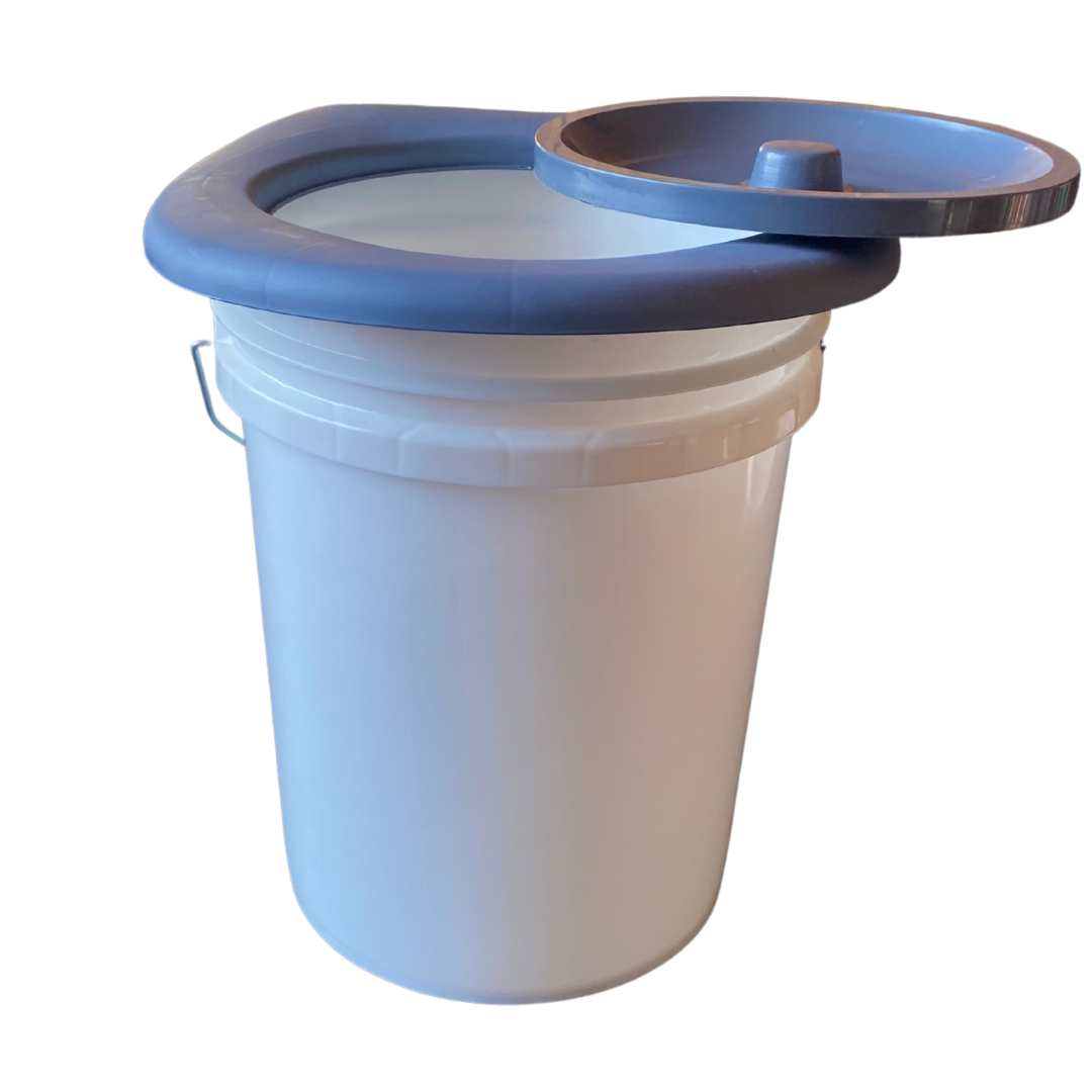 Transforma cualquier balde estándar de 20 litros o 5 galones en un práctico e higiénico baño seco con este asiento inodoro superpuesto. Ideal para iniciarte en el mundo de los baños secos.